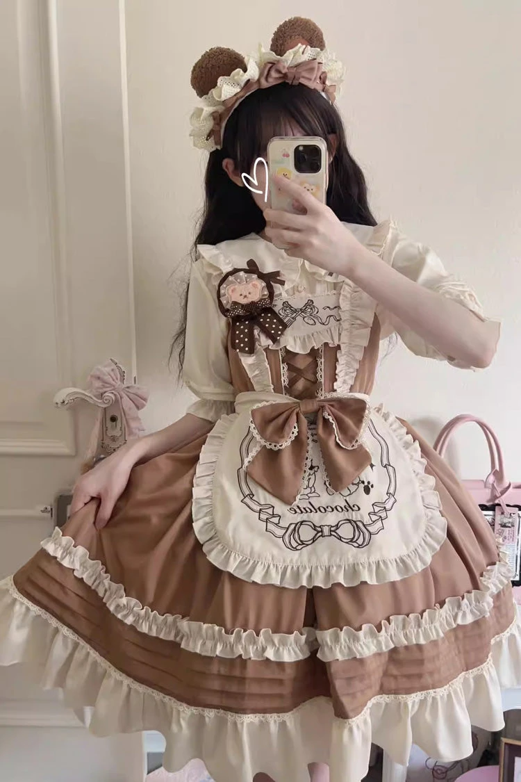 Red Hollow Embroidery Floral Print Half Sleeves High Waisted Victorian Lolita Prom Dress