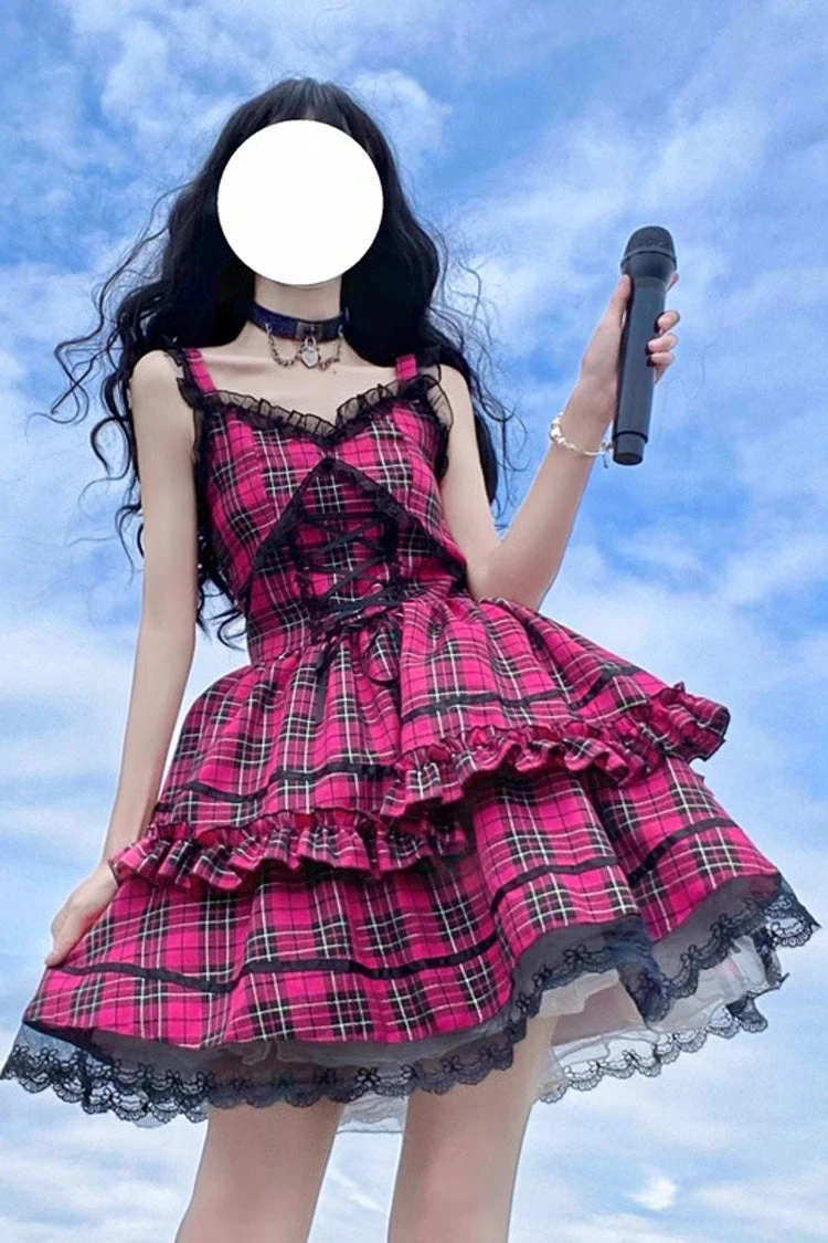 Black Square Neck Organza Print Ruffled Lantern Sleeves High Waisted Sweet Lolita OP Dress