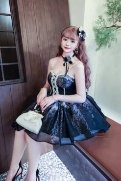 Black Sleeveless Rose Prologue Print Ruffle Bowknot Sweet Elegant Princess Lolita Jsk Dress