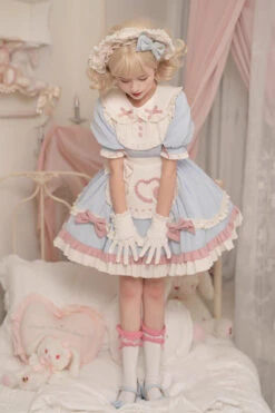 Blue Sheep & Bear Print Alice Girl Bowknot Ruffled Sweet Lolita JSK Dress