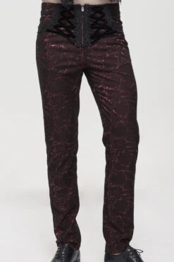 Ine Gothic Glossy Pattern Drawstring Lace Decoration Men’s Pants