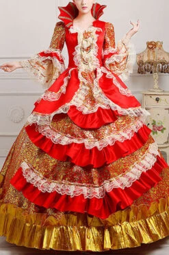 Trumpet Sleeves Stand Collar Lace Stitching Ruffled Multi-Layer Victorian Lolita Prom Dress