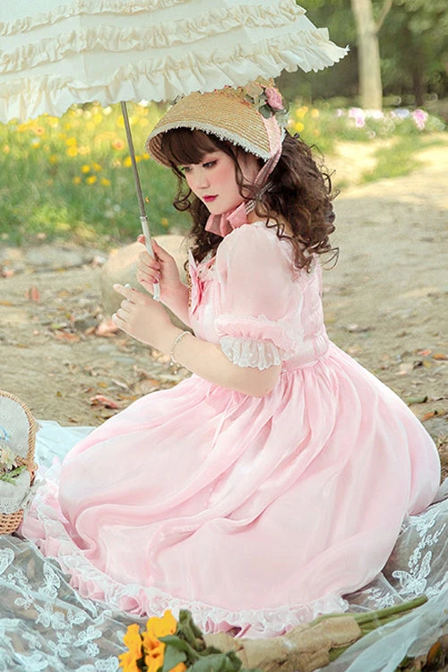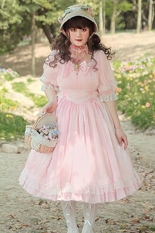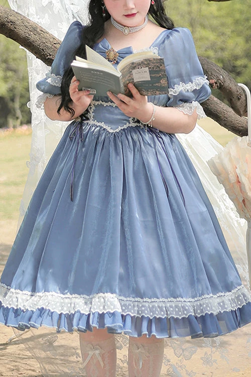 Blue Plaid Print Bow Ruffled Long Sleeves Single Breasted Sweet Lolita OP Dress