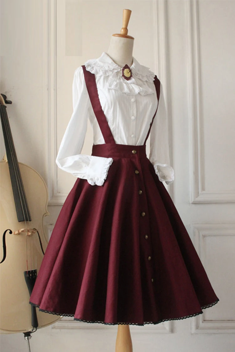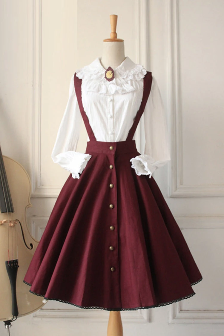 Vintage College Style Lapel Collar Long Sleeves Double Paneled Hem Sweet Lolita Dress