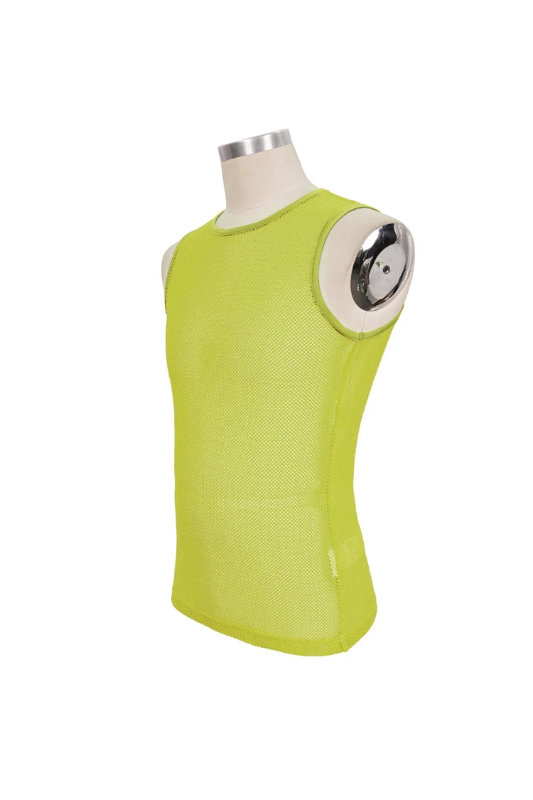 The main fabric is made of hexagonal diamond mesh with good elasticity, and the cuffs and neckline are made of light imitation PU fabric, which is suitable for daily wear.