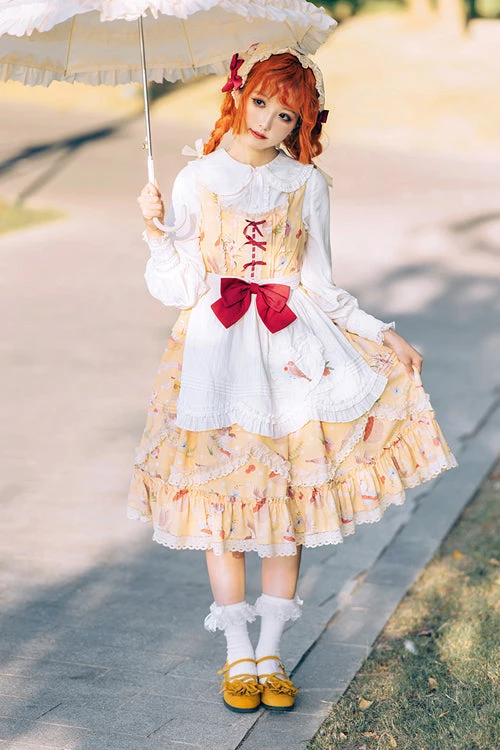Vintage College Style Lapel Collar Long Sleeves Double Paneled Hem Sweet Lolita Dress